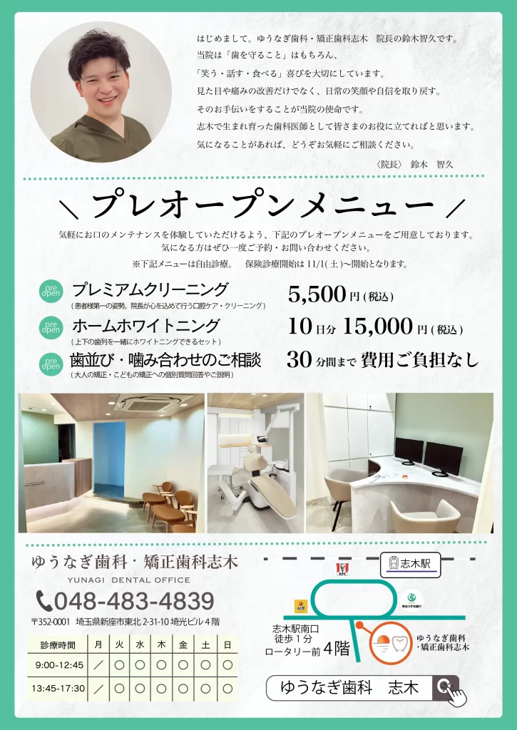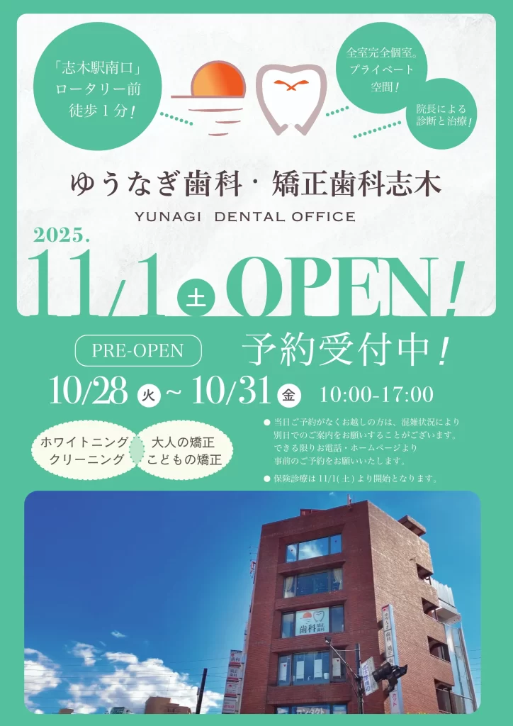 🌸【プレオープンのお知らせ】ゆうなぎ歯科・矯正歯科志木がまもなくオープンします!