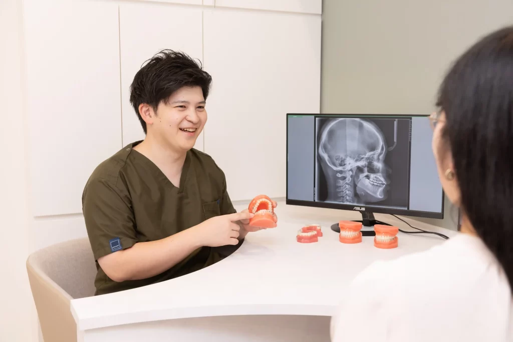 矯正歯科治療には専門的な知識と高度な技術が求められます。院長は矯正歯科医のもとで研鑽を積んでおります。特に骨格や歯並びを分析する「セファロ撮影」の重要性を理解し導入しており、矯正治療を行なっている医院でも専門院以外では導入している医院は稀です。患者様一人ひとりの骨格や歯の位置関係を詳細に把握した上で、最適な治療計画を立案します。矯正治療は見た目だけでなく、噛み合わせや発音、将来の歯の健康にも大きく影響を与える重要な治療です。専門的な知識をもとに、患者様にとって最適な矯正治療をご提案いたしますので、安心してご相談ください。